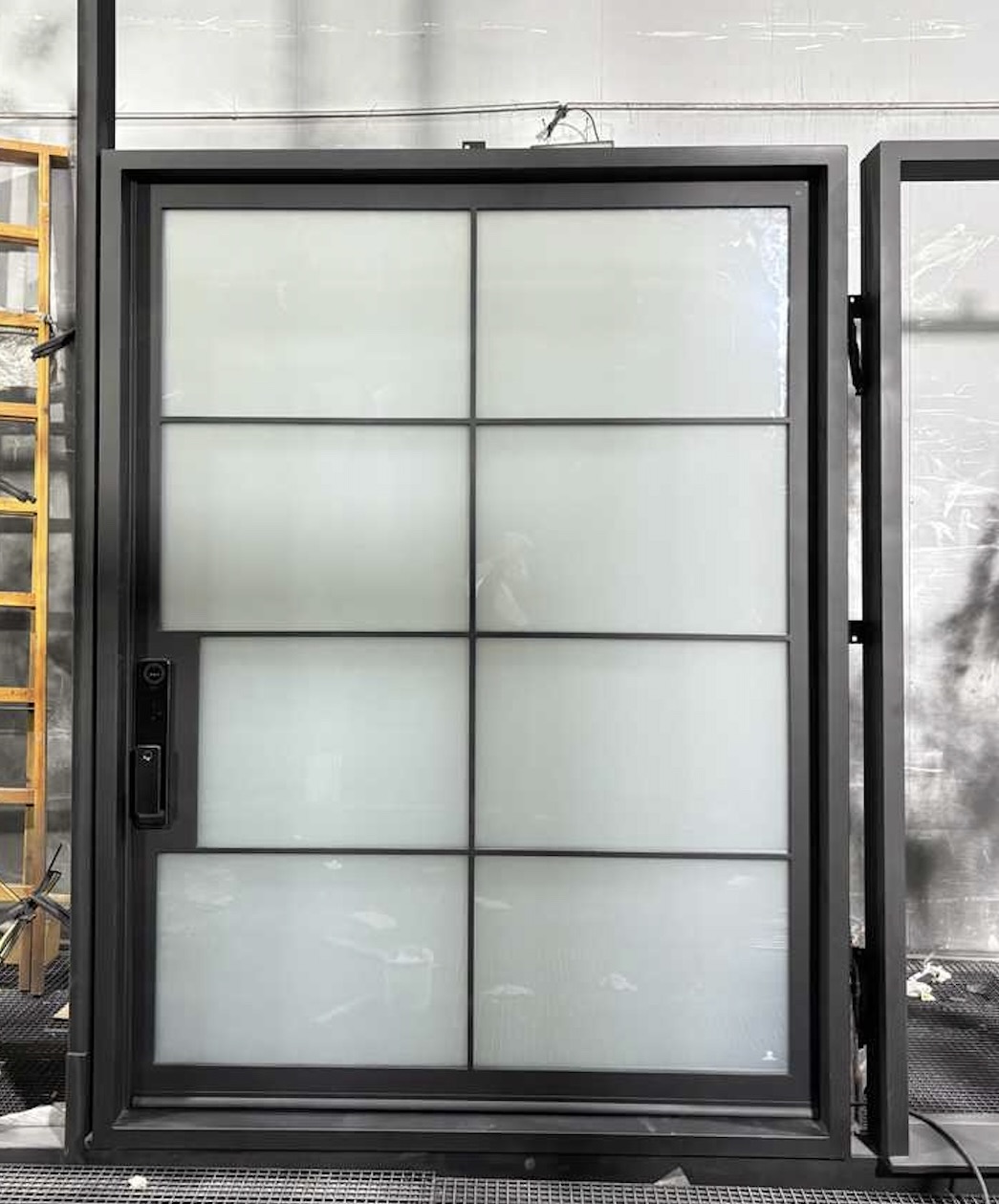 Crafted from 14-gauge steel and built with a robust 2″ x 6″ pivot jamb, this unit is designed for durability, sophistication, and smooth operation. The minimalist offset handle detail enhances the bold, contemporary appeal of the overall design.